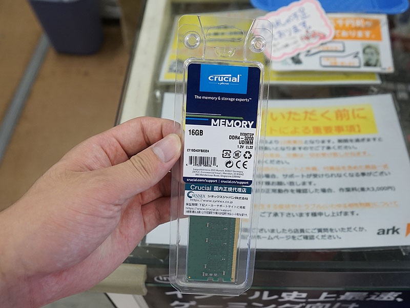 CrucialのDDR4-3200 16GBメモリに片面実装モデル、税込8,780円