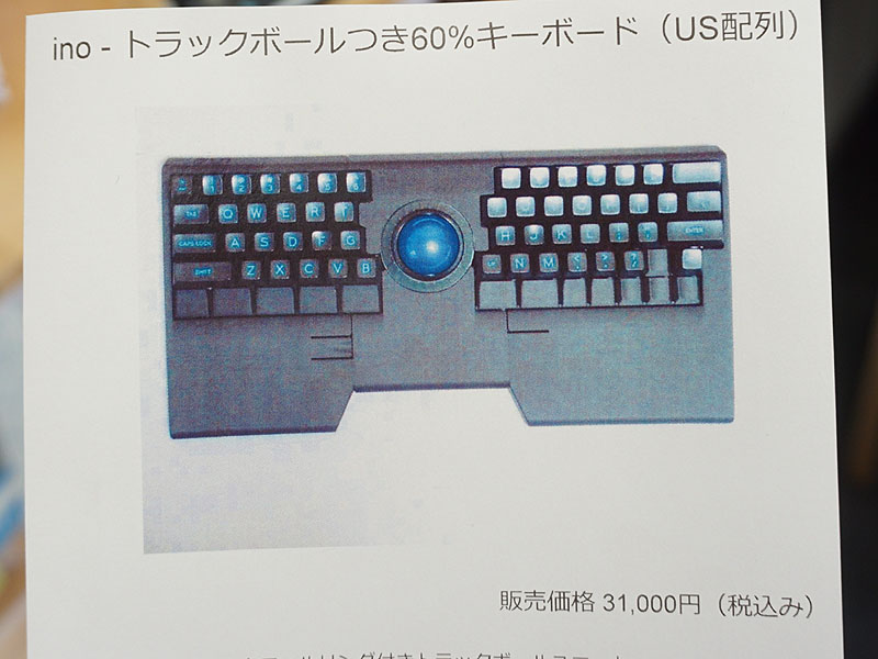トラックボールを中央に備えたキーボード自作キット「ino」が入荷