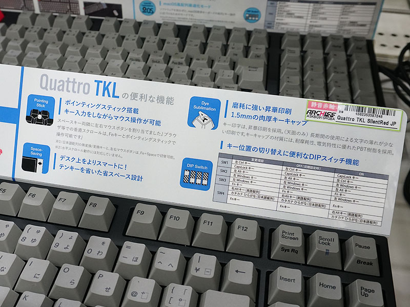 ポインティングデバイス搭載のメカニカルテンキーレスキーボード「Quattro TKL」が発売(9/13)