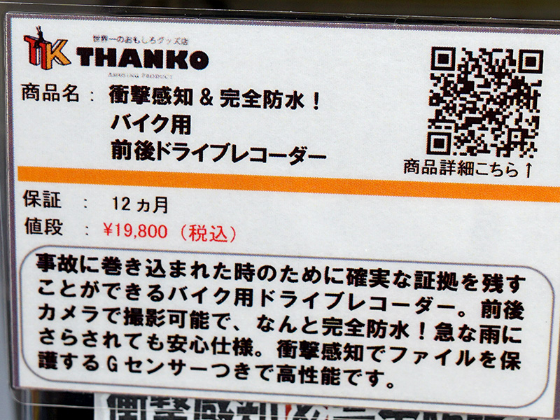 前後撮影可能なバイク向けドライブレコーダーがサンコーから、防水対応で衝撃感知機能搭載