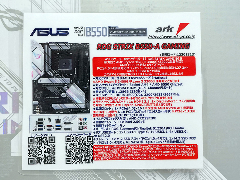 ASUSの「ROG STRIX B550-A GAMING」が発売、販路限定モデル