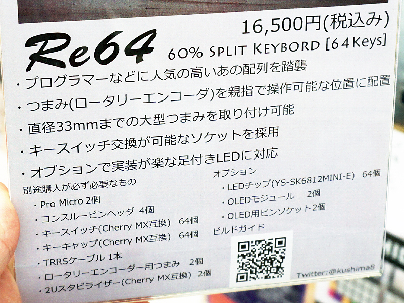 親指で操作できるロータリーエンコーダ搭載の左右分離60%キーボード「Re64」
