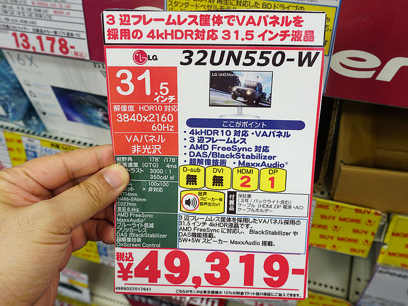 LGの31.5型4K液晶「32UN550-W」が入荷、価格は税込49,320円(2/5)
