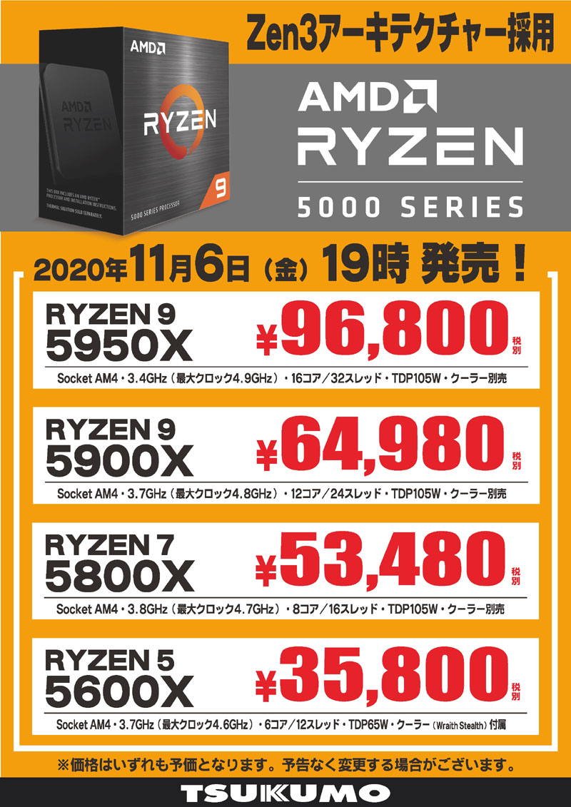 11月6日(金)Ryzen 5000シリーズ発売記念生配信やります!マザーボード5社のプレゼンバトルに鈴木咲さん初生組み立ても!!!
