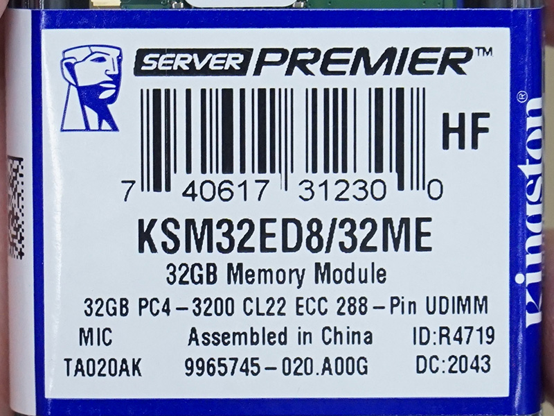 1枚32GBのECC付きDDR4-2933/3200メモリが入荷、Micron製DRAM採用