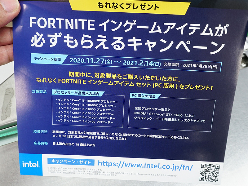 Intel製CPU購入で「フォートナイト」のゲーム内アイテムが必ずもらえるキャンペーン