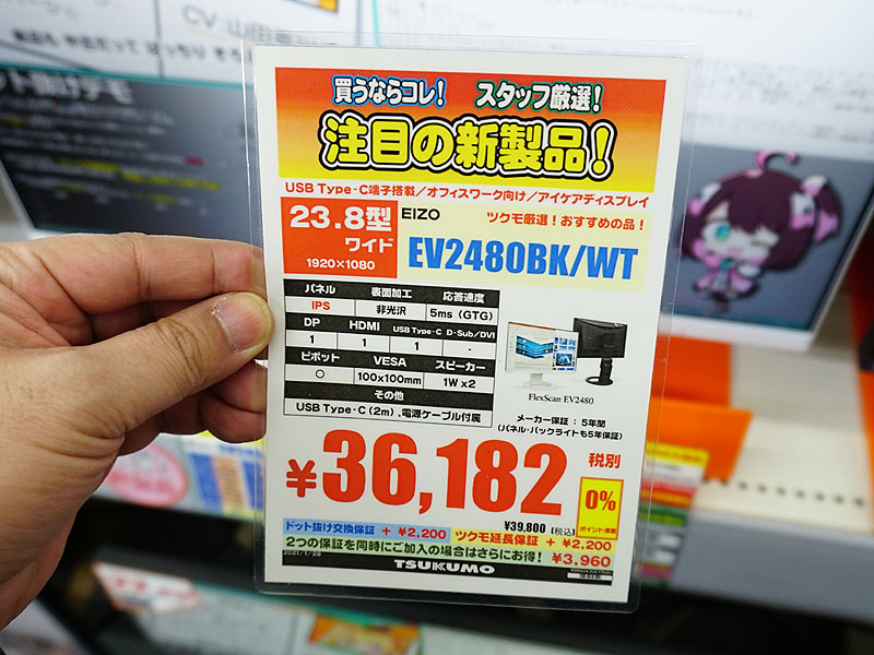 ノートPCに給電できる23.8型IPS液晶「FlexScan EV2480」がEIZOから、USBハブ4ポート搭載(4/5)