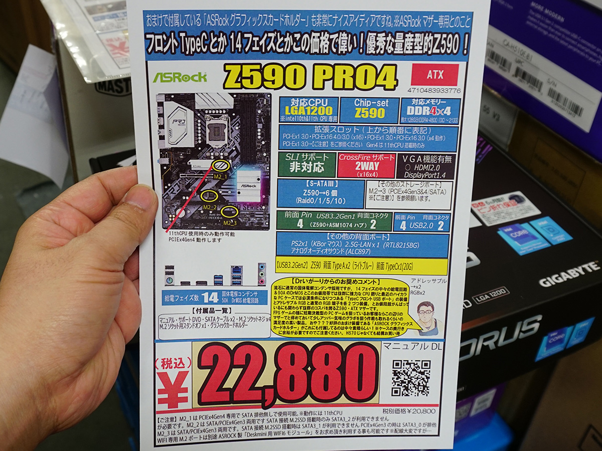 ビデオカードホルダー付きのASRock製マザー「Z590 PRO4」