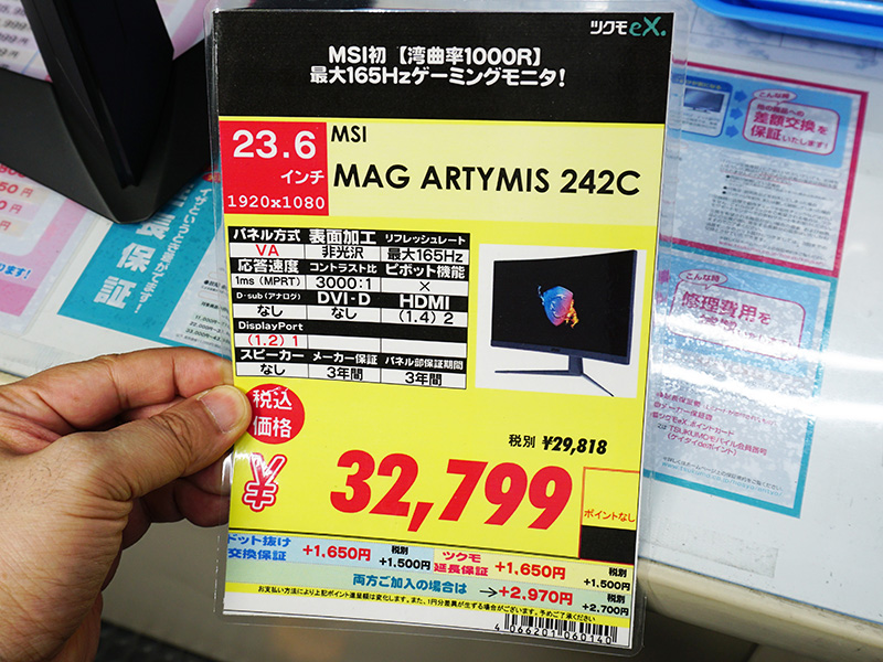 165Hz駆動/WQHDの曲面ゲーミング液晶がMSIから2製品、税込41,800円から