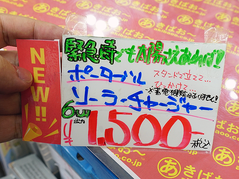 最大出力6Wのソーラーパネルが1,500円、スマホの充電も可能
