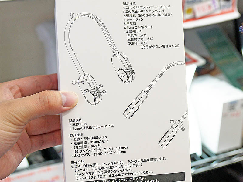 “羽根のない”ネッククーラーが2,980円、バッテリー内蔵で風量は3段階