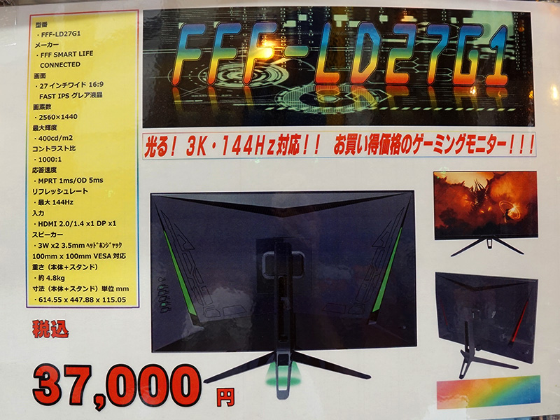 WQHD/144Hz駆動の27インチゲーミングモニター、HDR対応で37,000円