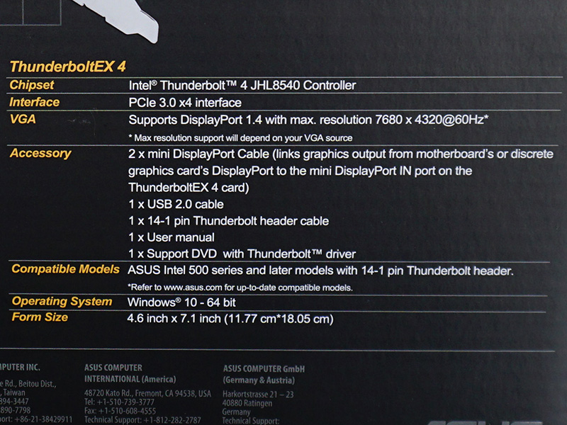 ASUSのThunderbolt 4カードが入荷、Intel 500系マザー向け