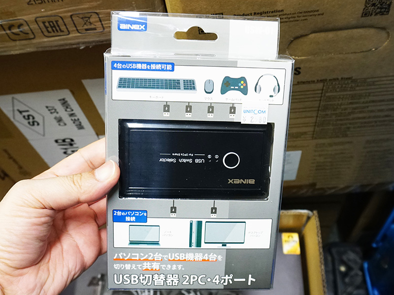 4台のUSBデバイスを共有できるPC切替器が上海問屋から、PC×2台用