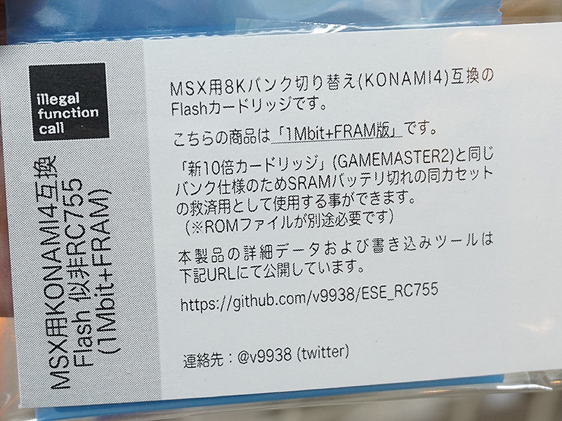 MSX向けのフラッシュカートリッジ「似非RC755」、KONAMI4互換