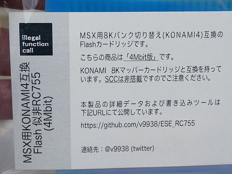 MSX向けのフラッシュカートリッジ「似非RC755」、KONAMI4互換