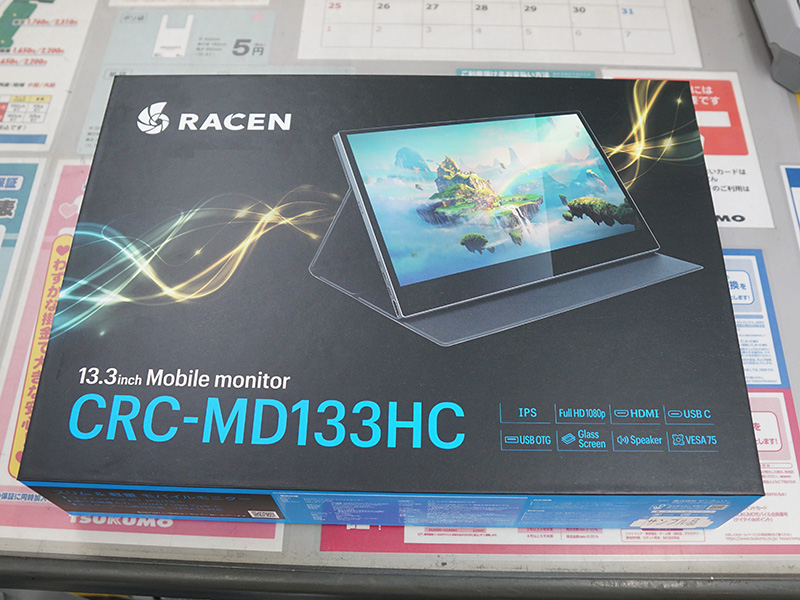 センチュリー「RACEN」の13.3型モバイルモニターが入荷、USB Type-Cケーブル1本で動作