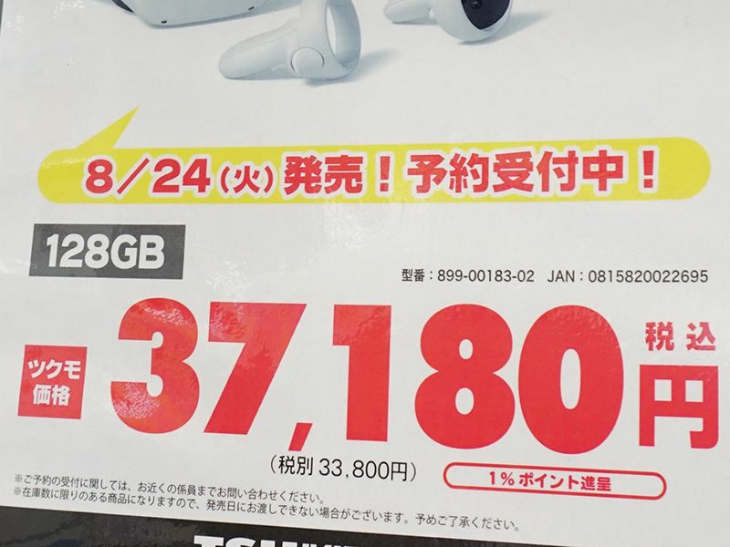 「Oculus Quest 2」の店頭予約スタート、価格は33,800円から
