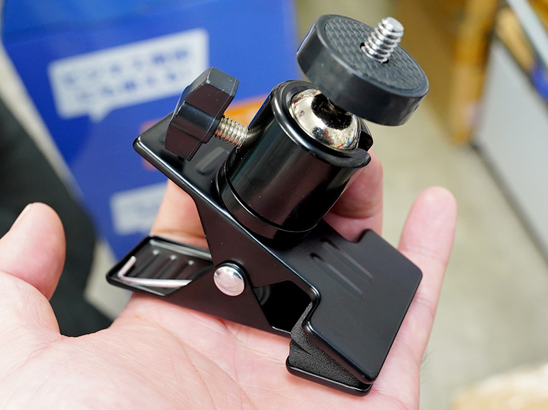 ボールジョイントを備えたクリップ型カメラアタッチメント、価格は780円