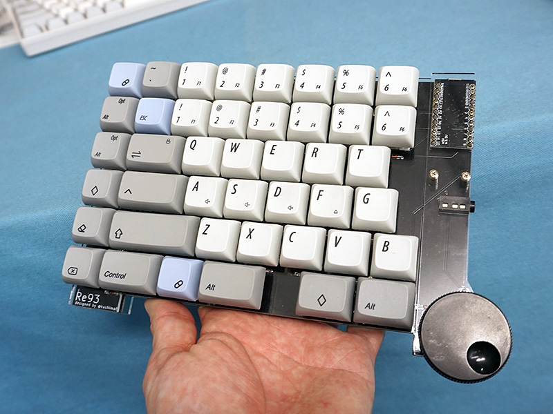 親指操作のロータリーエンコーダを備えた左右分離90%キーボード「Re93」、組み立てが必要な自作キット