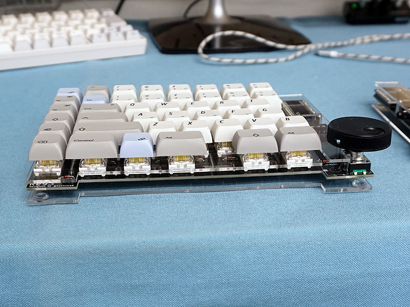親指操作のロータリーエンコーダを備えた左右分離90%キーボード「Re93」、組み立てが必要な自作キット