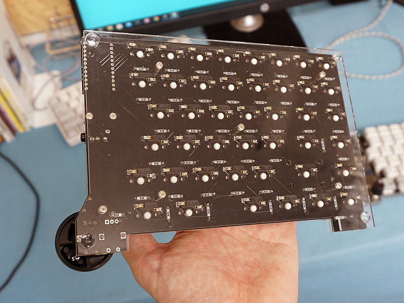 親指操作のロータリーエンコーダを備えた左右分離90%キーボード「Re93」、組み立てが必要な自作キット