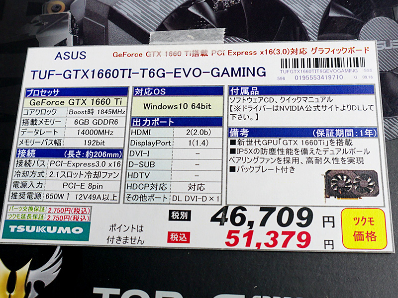 ASUS TUF GamingのGeForce GTX 1660 Tiが発売、価格は51,380円