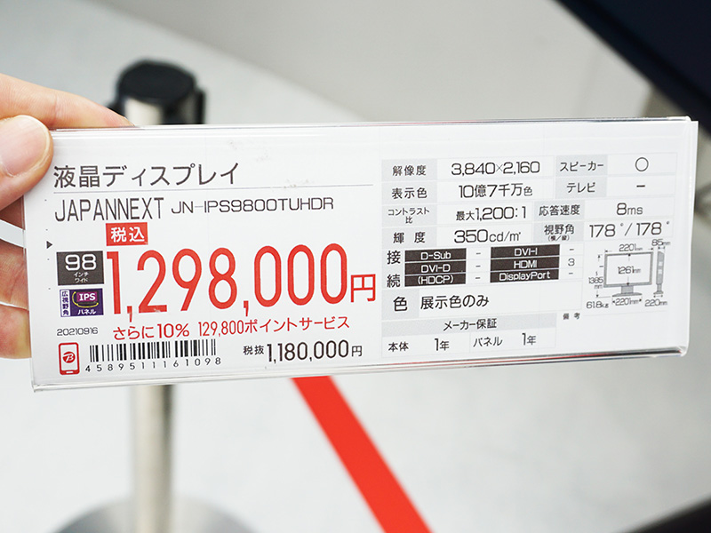 業界最大クラスの98型4Kモニターがソフマップで展示スタート、価格は約130万円!(7/10)