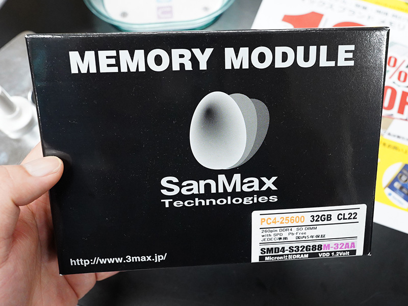 SanMaxのDDR4-3200 SO-DIMM 8GB×2枚組が入荷、価格は9,680円