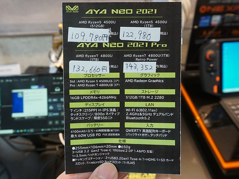 携帯ゲーム機型PC「AYA NEO 2021」が登場、Ryzen 5やメモリ16GB搭載