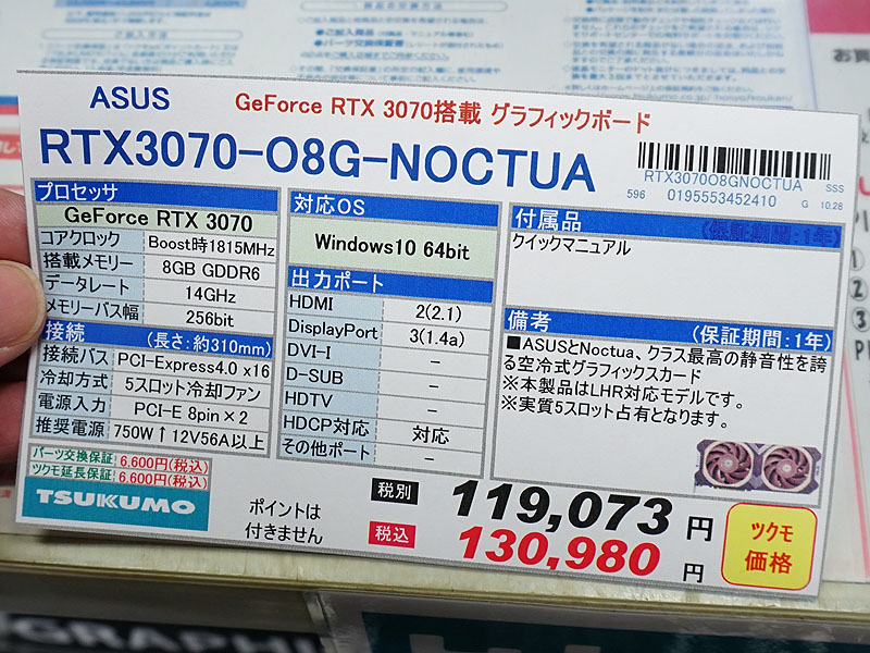 ASUSやColorful、PalitなどのGeForce RTX 3070が計8モデル