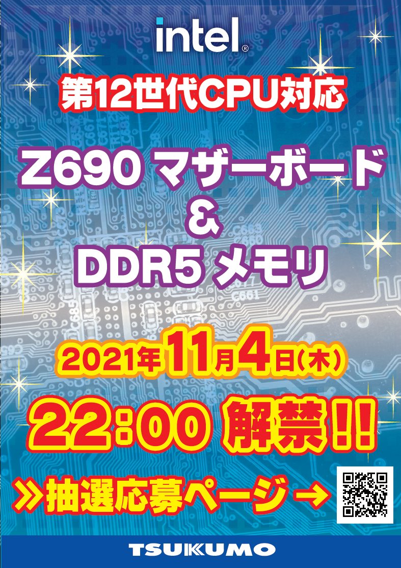 ツクモがIntel Z690マザーとDDR5メモリの抽選申し込みを開始、入荷数は非常に少ない?