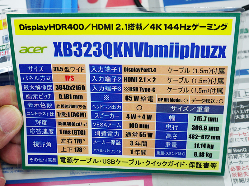 4K/144Hz対応の31.5型ゲーミングモニター「Predator XB3」が発売