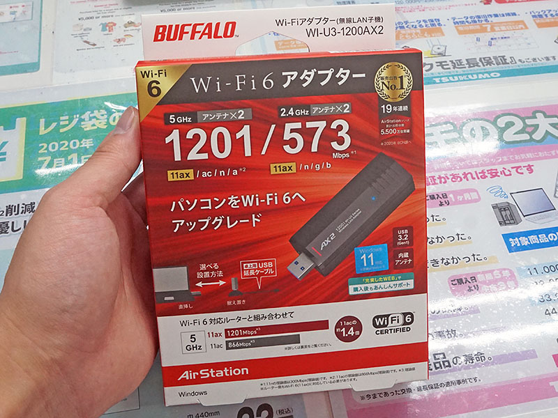 Wi-Fi 6対応のUSB無線LAN子機がバッファローから、価格は5,980円