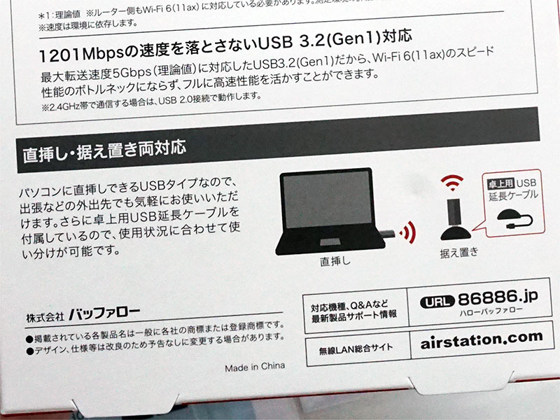 Wi-Fi 6対応のUSB無線LAN子機がバッファローから、価格は5,980円