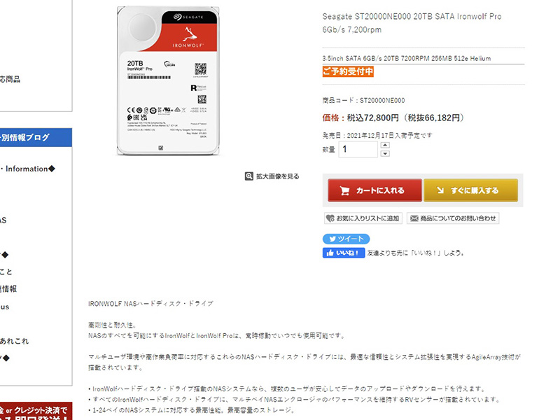 過去最大の20TB HDDが12月17日に発売、SeagateのNAS向け「IronWolf Pro」