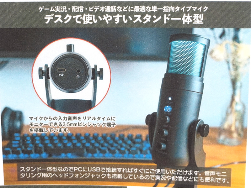 RGBライト内蔵のスタンド一体型マイクが上海問屋から、価格は3,980円