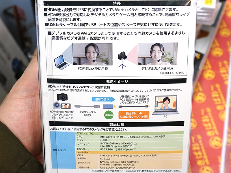 デジタルカメラをWebカメラ化できるHDMIアダプタがミヨシから
