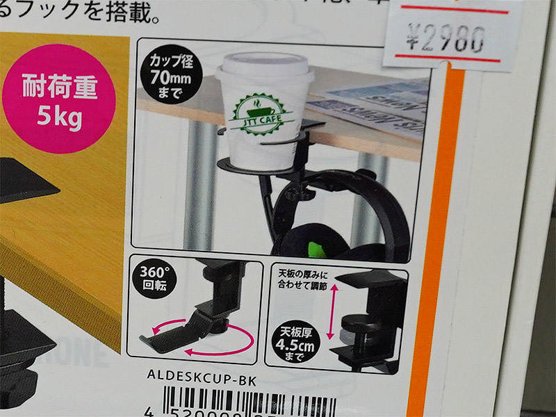 カップホルダーも備えたヘッドフォンハンガー、机の縁にクランプで固定