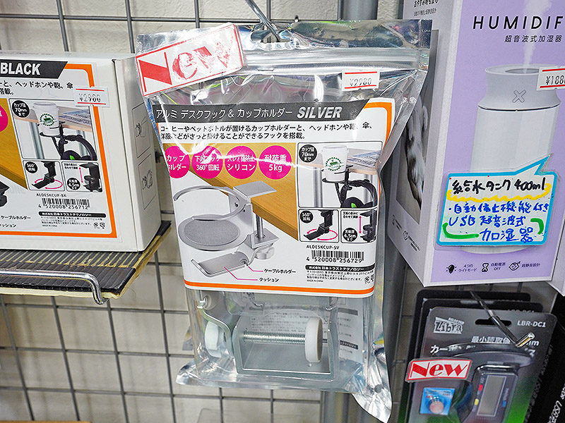 カップホルダーも備えたヘッドフォンハンガー、机の縁にクランプで固定