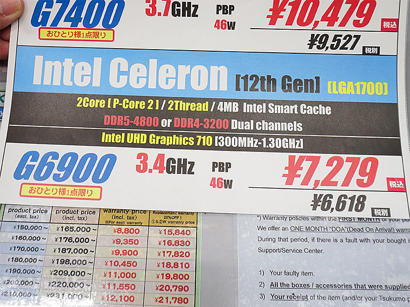 Alder Lake版のPentium GoldとCeleronが発売、価格は7,280円から