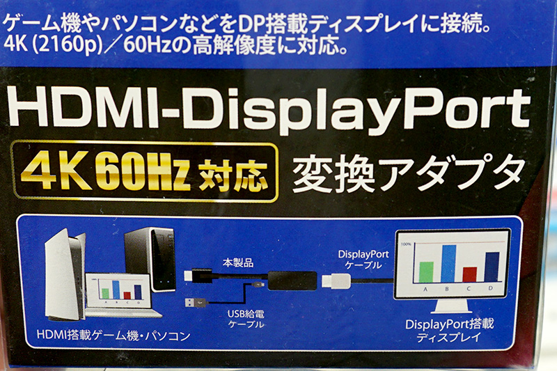 4K/60Hz対応のHDMI to DisplayPort変換アダプタ、補助電源端子もあり