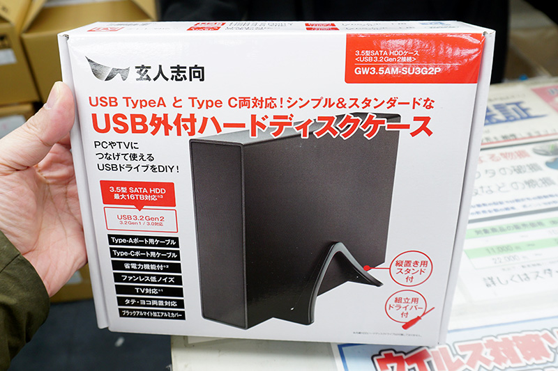 USB 3.2 Gen2対応でType-C/Type-A両ケーブル付属の外付けHDDケース