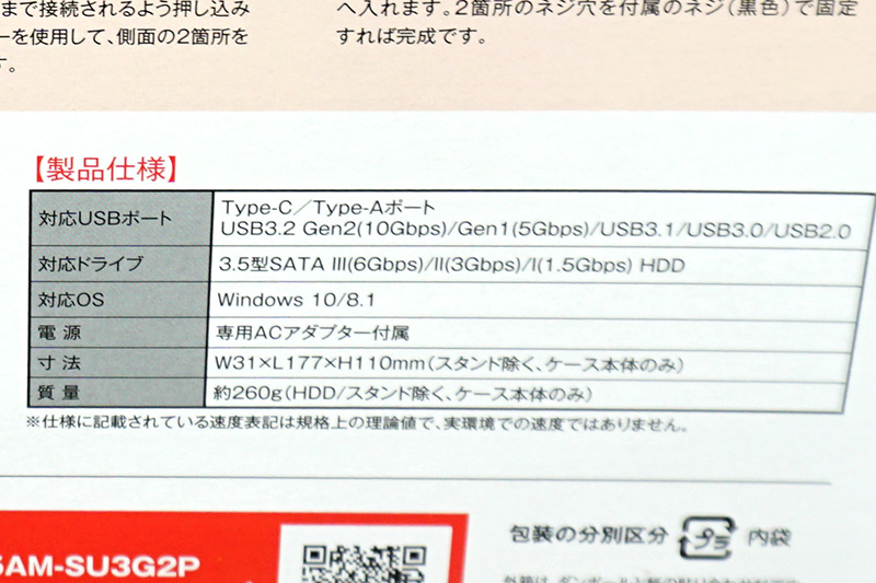 USB 3.2 Gen2対応でType-C/Type-A両ケーブル付属の外付けHDDケース