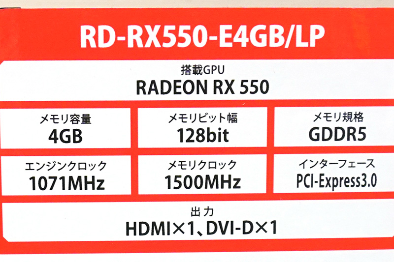 1スロット/ロープロ対応のRadeon RX 550が玄人志向から、価格は17,600円