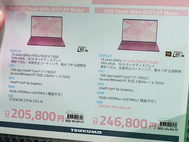 Razer Book Quartz Pinkの2021年冬モデルが発売、タッチ操作に対応