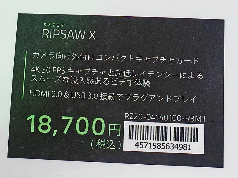 4K/30fps対応のHDMIキャプチャ「Razer Ripsaw X」が発売、デジカメをWebカメラ化