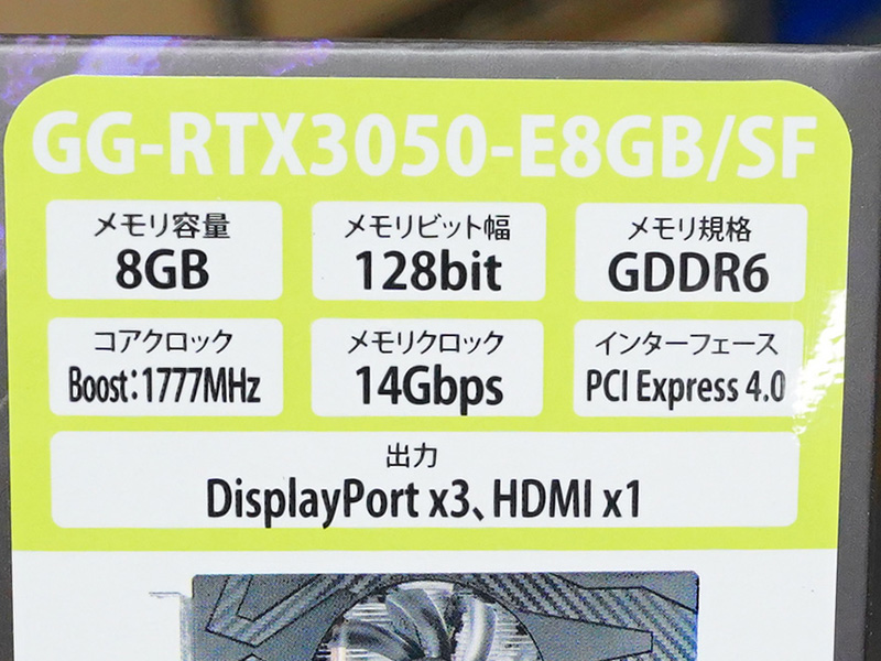 GALAKURO GAMINGのGeForce RTX 3050はシングルファン仕様、カード長は約189mm