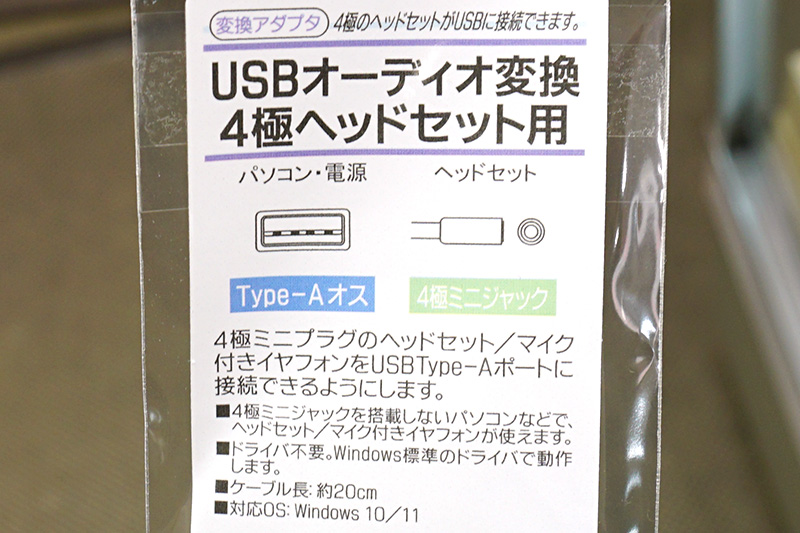 4極ミニプラグ - USB変換ケーブルにショートタイプ、長さ20cm