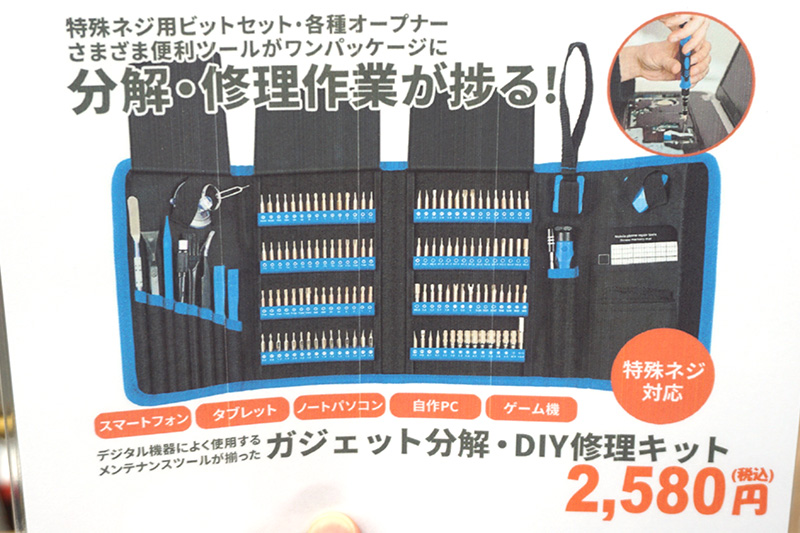 89種類のビットやオープナーなどがセットになったガジェット分解ツールキット、上海問屋から